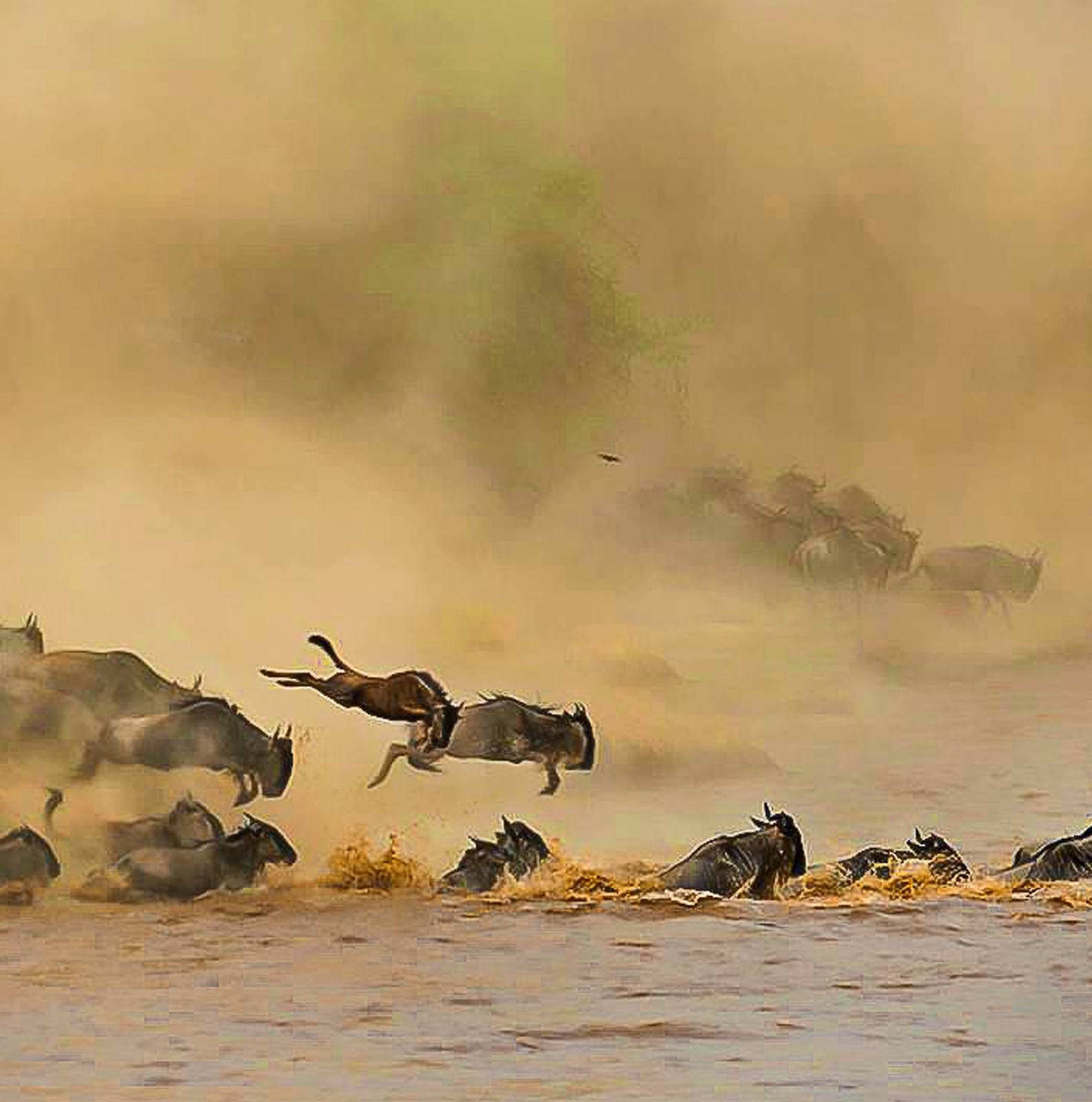 Migration Of The Wildebeest Crossing The River